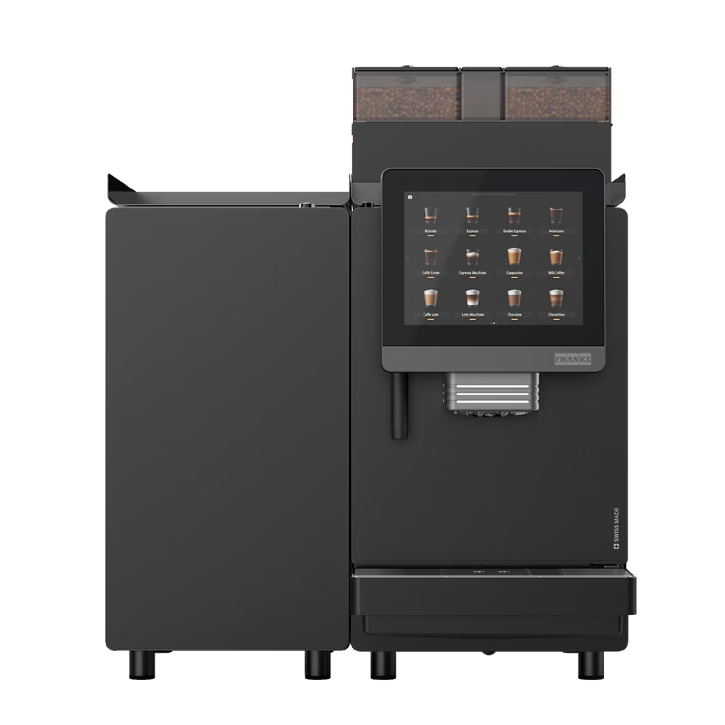 La Franke A600 dispose d’un écran tactile couleur d’environ 8 pouces, de plusieurs broyeurs pour les grains de café et d’un système de nettoyage automatique CleanMaster™ qui facilite l’entretien quotidien et garantit une hygiène optimale.